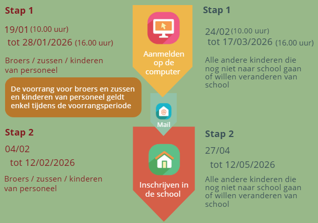 De aanmeldingsprocedure verloopt volgens het inschrijvingsdecreet basisonderwijs.